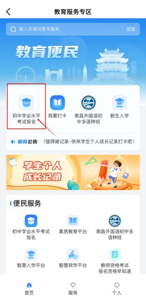 进入后点击“初中学业水平考试报名”