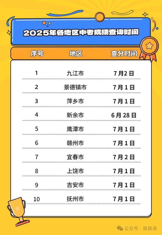 仅供参考,查分时间以各地考试院为准 来源:赣服通微信公众号