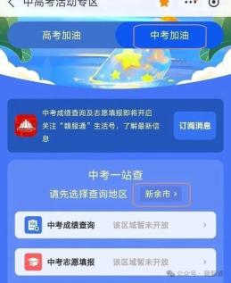 2.首页点击中高考专题服务,点击中考加油,选择查询地区,点击中考成绩查询服务。