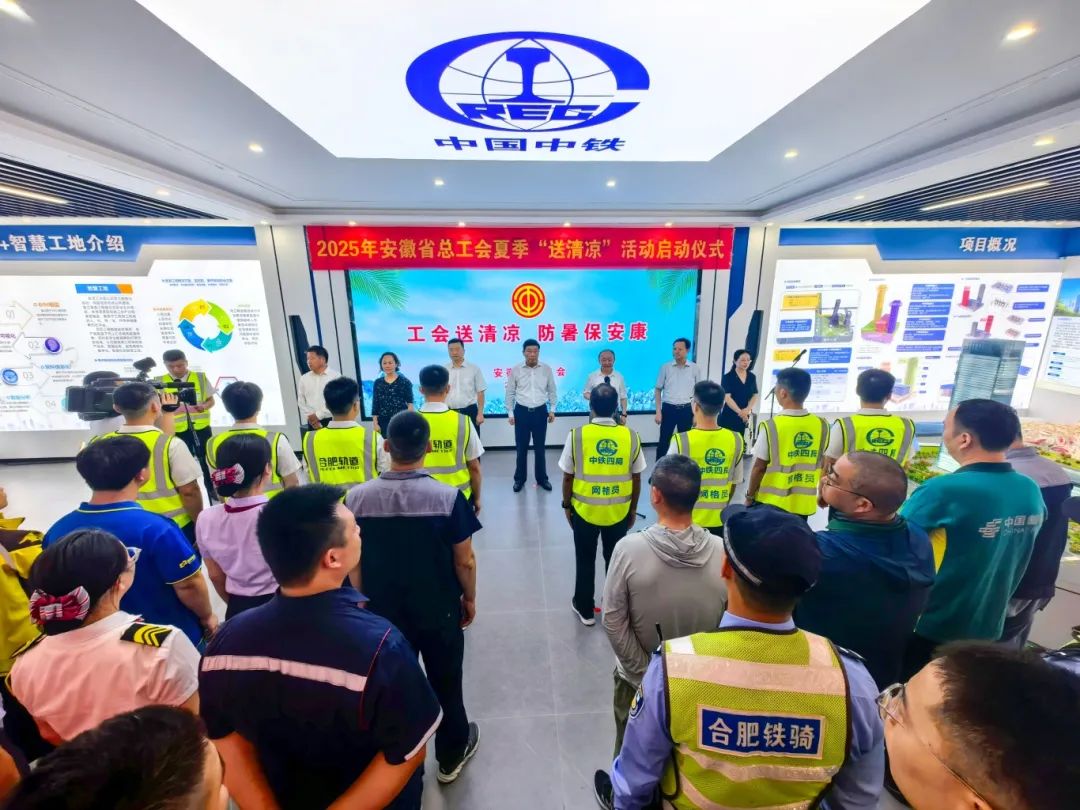 7月2日,2025年安徽省总工会夏季“送清凉”活动启动仪式在中铁四局合肥轨道线网控制中心及甘棠置业项目建设工地举行。