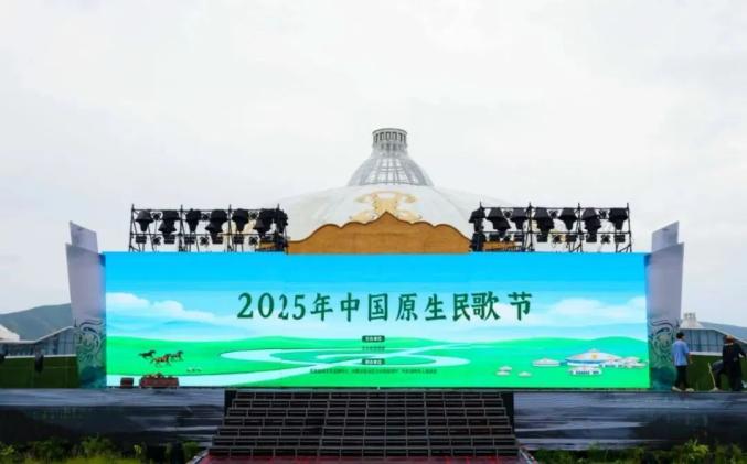 与之相映成趣的是紧锣密鼓的2025年中国原生民歌节(以下简称“民歌节”)现场:舞台搭建进入尾声,工作人员正为今日开幕做最后冲刺;一旁蒙古包内,演员们专注投入,进行着紧张的彩排。自然的静谧与筹备的热忱在此交融,共同静候一场民歌盛宴拉开帷幕。