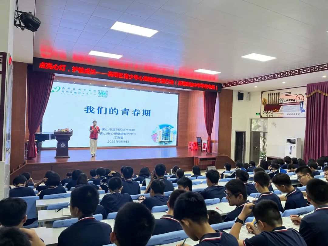 为进一步筑牢青少年心理健康防线,培养学生的健康意识和自我保健能力,帮助学生养成良好行为习惯和文明健康生活方式,营造校园健康文化氛围,近日,佛山市高明区卫生健康局、高明区新市医院携手荷城街道“粤心安”社会心理服务站开展的“点亮心灯 护航成长——高明区青少年心理健康关爱行动”心理健康系列讲座圆满举行!本次系列讲座聚焦青少年成长关键期,通过科学知识普及、心理技能训练和模拟体验,为青少年心理健康保驾护航。