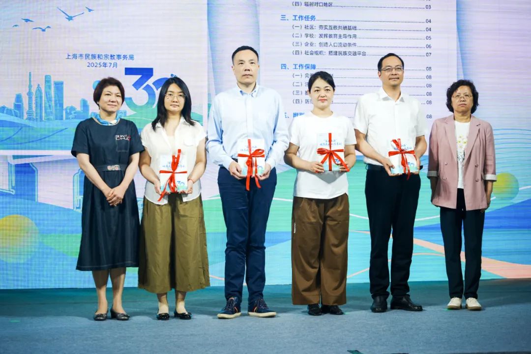 活动现场发布了《新时代民族工作华阳路街道基层实践指引(2025版)》,为基层民族工作提供了切实可行的操作指南和方向指引。《“家在上海”城市民族工作导则(2025版)》也在现场正式亮相,上海市民族和宗教事务局、市政协民宗委向虹口区民宗办、浦东新区花木街道、嘉定一中、光明集团蔬菜公司等代表赠书。