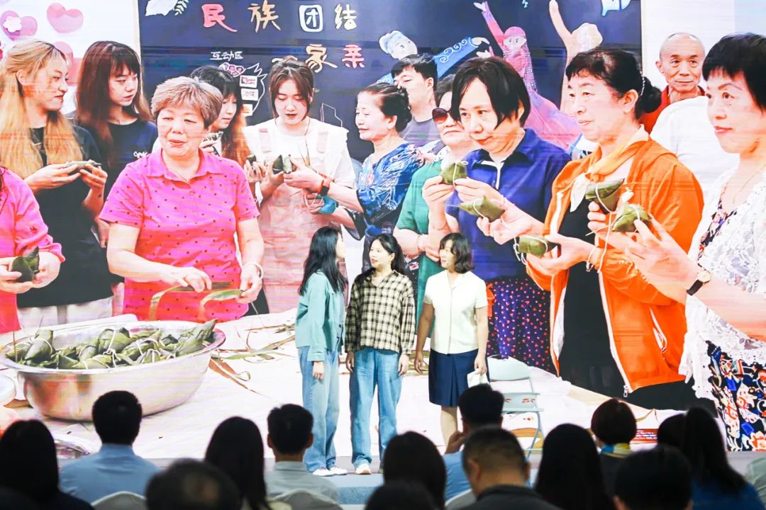 在情景演绎环节中,东华大学各民族学生、华阳路街道“石榴红”青年团队共同演绎了以“家”为名的故事,夏妈妈与西藏孩子的亲情故事、“红石榴”帮扶项目、各族青年在上海的成长经历等共同组成了民族团结的和谐画卷。在随后的采访互动中,30年来结对、共建、帮扶的原型人物纷纷登场,以真挚诚恳的发言感染了现场的观众。
