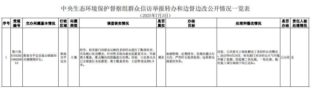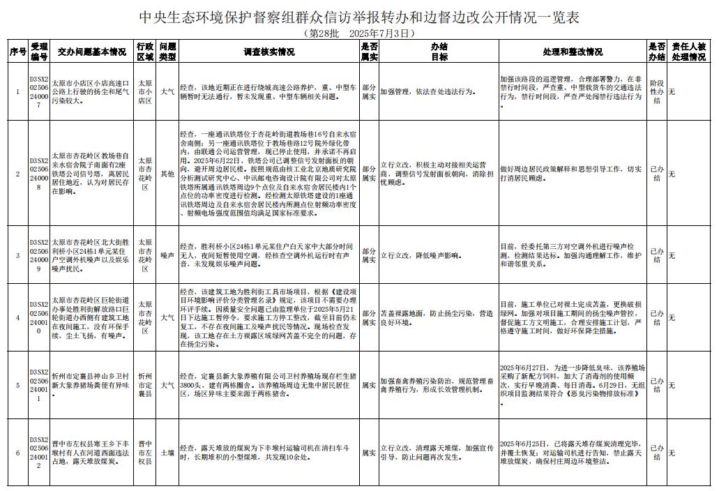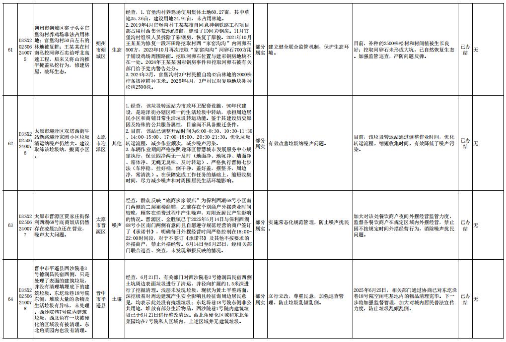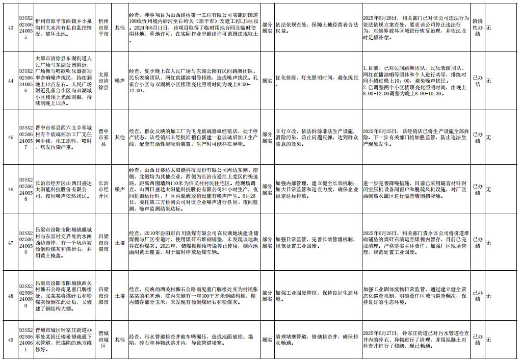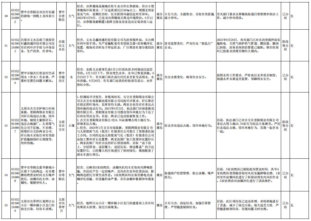 同时,将第六批交办信访举报件D3SX202506020055办理情况予以公开。