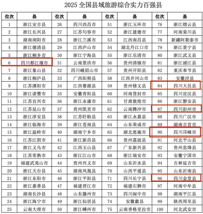 数据显示,旅游总收入超200亿元的县域达44个,较2023年增加10个;接待游客超2000万人次的县域63个,增加11个。浙江、四川、江苏分别以34席、11席和7席领跑百强县榜单。