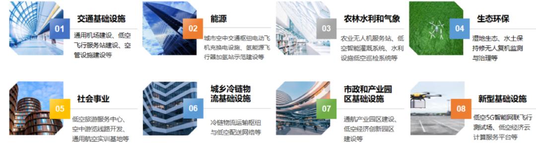 <关于规范实施政府和社会资本合作新机制的指导意见>的通知》(国办函〔2023〕115号)正式对外发布,这标志着政府和社会资本合作(PPP)又重新拉开大幕,并将开启新的纪元。2025年计划发行地方政府专项债券4.4万亿元,低空经济作为地方政府专项债券发行“正面清单”的项目之一,有望获得重组的专项债额度倾斜,项目资本金占专项债总额度的比例将由25%提高至30%。低空经济涉及的无人机制造、基础设施建设、应用场景开发等核心领域。基于此,低空经济专项债可以考虑围绕以下8类项目展开谋划。