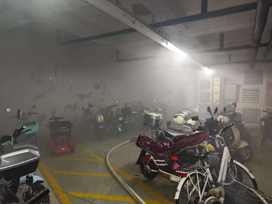 地下车库内停放的电动自行车起火。