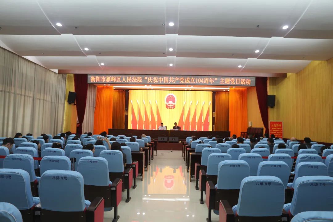 为庆祝中国共产党成立104周年,进一步增强法院干警的纪律意识和廉洁意识,推动深入贯彻中央八项规定精神学习教育走深走实,7月4日下午,雁峰区人民法院开展“庆祝中国共产党成立104周年”主题党日活动暨警示教育活动,党组书记、院长谢云业出席会议并讲话,党组副书记、副院长刘国国主持会议,全体在院干警参会。