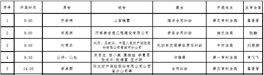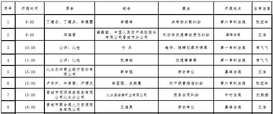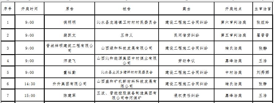 原标题:《【开庭公告】沁水法院7.7-7.11排期开庭情况速览》