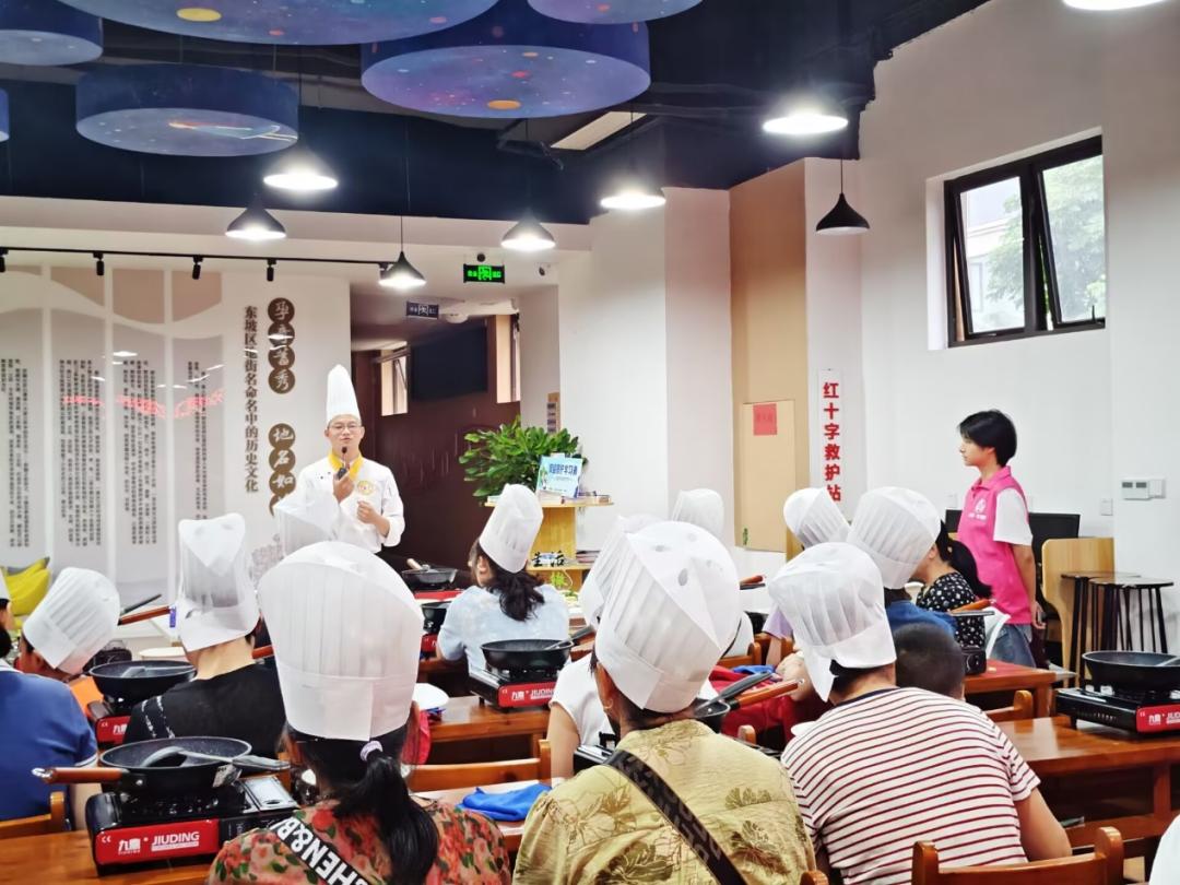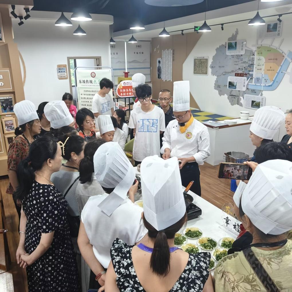 在苏辙社区,活动以“烹饪东坡味.共筑文明家”为主题,由眉山职业技术学院烹饪工艺与营养专业骨干教师、眉山市非物质文化遗产“东坡肘子传统制作技艺”代表性传承人许川担任主讲。许老师专业讲解了东坡肘子这道经典菜品的历史渊源、文化内涵,以及烹饪过程中的关键步骤。从肘子的前期处理、焯水去血沫,到调料的精准搭配、火候的把控,再到炖煮时长的掌握等,每一个环节都进行了清晰阐释。他表示,东坡美食不仅是味蕾的享受,更承载着眉山地域文化特色和家庭团聚的温情,通过学习传统菜品烹饪,能让家庭在共享美食中增进情感,传承优良家风。实践操作环节,许川一边现场示范,一边针对大家提出的问题进行一对一指导,现场氛围热闹而温馨。活动尾声,大家品尝着自己亲手制作的东坡肘子,纷纷表示不仅学会了一道拿手菜,更感受到了家庭美食背后的文化意义。许川也鼓励大家将这份烹饪热情带入日常,用美食点亮家庭生活,为家庭文明建设添砖加瓦。