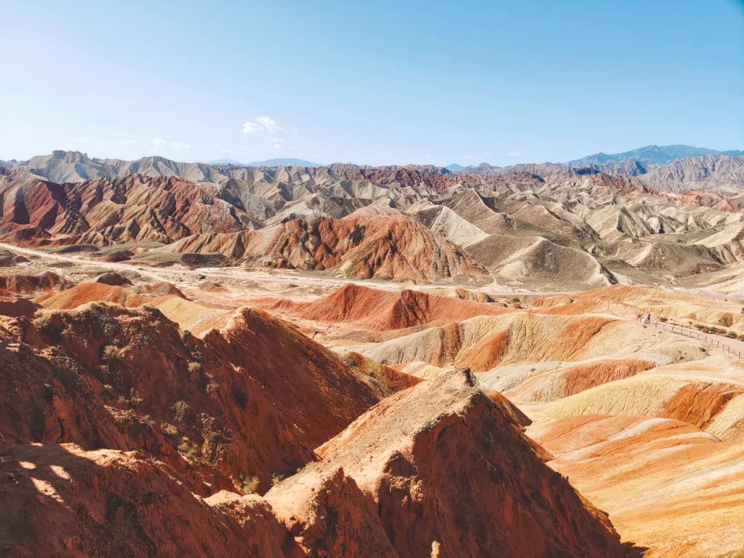 七彩丹霞间,层峦如打翻的颜料盘,红、橙、黄肆意铺展,蓝天为幕。快门一响,把这磅礴装进画。往后翻看,似能摸到岩间热风,让西北的雄浑,在回忆里滚烫流淌。