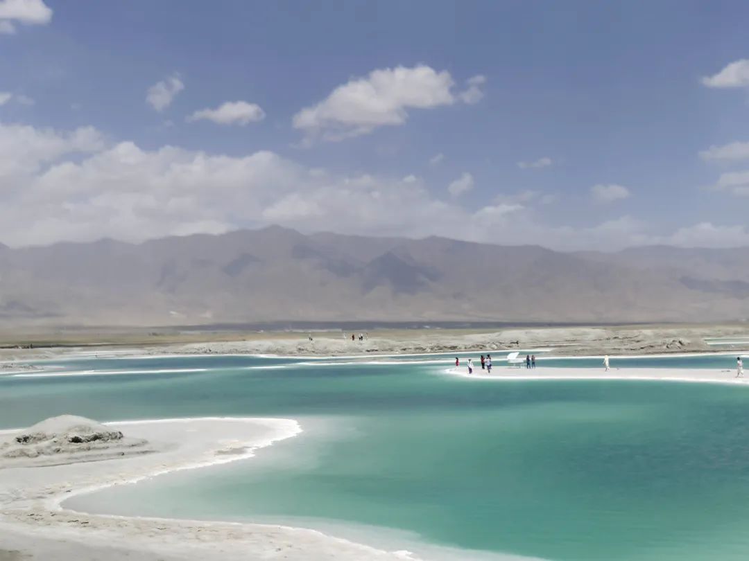 盐湖幻境中,盐湖如被打碎的翡翠,在大地铺展深浅绿意,远山朦胧作衬,人们漫步其间成为自然画卷的点缀。快门定格,多年后再看,仿佛能触到湖面的清凉,让西北大地的粗犷与灵秀,在记忆里重新交融,晕染出独特的诗意。