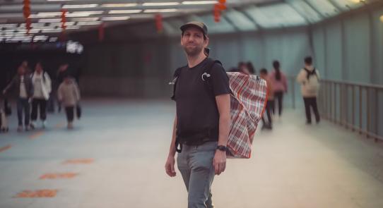对我来说,中国是一个充满活力和烟火气的地方,在火车上或者火车站里更是如此,特别是春运的时候。通过我的观察,每到春运,人们都会携带各式各样的行李袋去车站,其中有一种叫“蛇皮袋”的,引发了我的强烈兴趣。我专门去商场买了一个,背在身上去街上走了走,体验了一下是什么感觉。在拍摄这个选题的过程中,我也记录了火车站里的各种温情瞬间,更加理解了“回家”蕴含的重要含义。