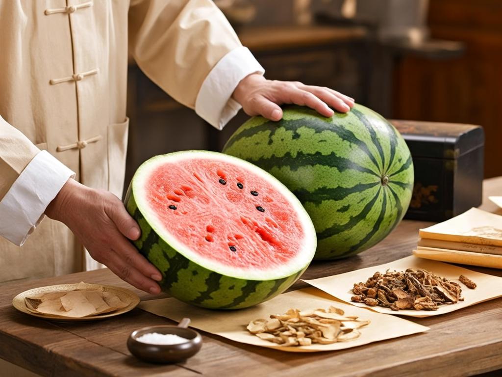 《本草纲目》称西瓜能“消烦解渴,解暑热,疗喉痹”,《日用本草》强调其利尿作用,《本经逢原》更将其比作白虎汤,凸显清热效力。