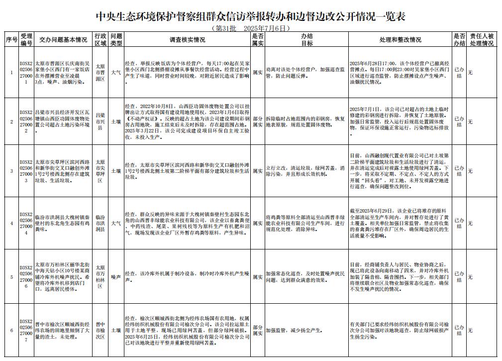 原标题:《中央生态环境保护督察群众信访举报转办和边督边改公开情况(第三十一批)》
