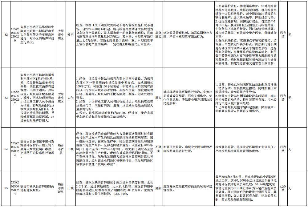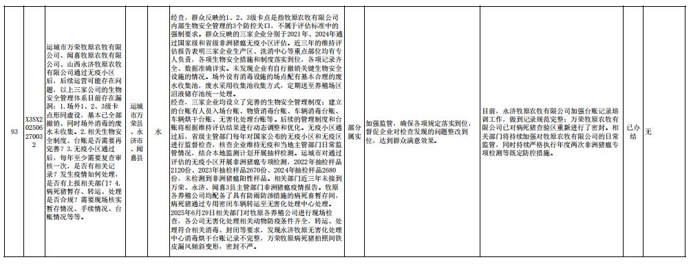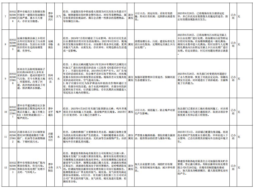 截至7月6日,中央第一生态环境保护督察组向我省交办的第三十一批群众信访举报件93件,各责任单位均按要求上报调查处理情况。其中,已办结85件,阶段性办结8件,按照有关规定予以公开。