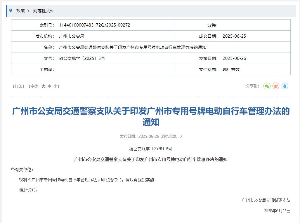 原标题:《9月1日起施行!事关电动自行车,广州最新管理办法→》