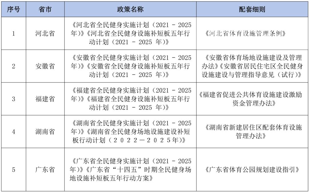 各省紧密结合地方实际,以《全民健身实施计划》和《全民健身设施补短板行动计划》为核心,构建差异化政策体系。东部地区聚焦高质量、智慧化设施供给,中西部地区侧重破解基础健身设施“从无到有”的覆盖难题。同时,各地通过出台配套细则强化政策落地,如《河北省体育设施管理条例》、《湖南省新建居住区配套体育设施管理办法》《广东省体育公园规划建设指引》等,为设施建设、管理、运营提供具体规范。多数省份还设立全民健身设施补短板专项资金,与国家资金形成联动,确保政策执行力度。