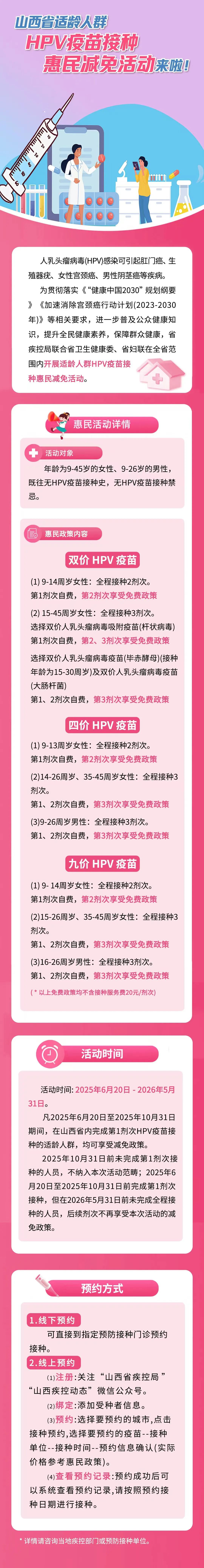 【布谷新声·民生资讯】山西省适龄人群HPV疫苗接种惠民减免活动来啦!