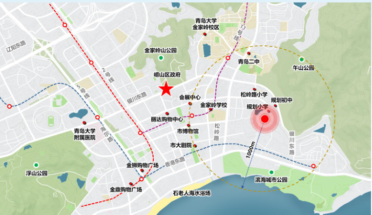 据了解,该地块位于主城区稀缺的黄金地段,东邻崂山景区,南邻滨海城市公园,距离石老人沙滩仅800米,自然禀赋得天独厚,是臻享靠山望海高品质住宅的理想之地。交通便利地铁覆盖。城市主干道松岭路、银川东路和香港东路交汇于此,地铁11号线、5号线覆盖。顶级文化、教育、医疗资源丰富。高能级文化资源云集。附近有青岛市博物馆、青岛市大剧院、青岛市会展中心等文化设施;顶尖教育资源集聚,周边现有岛城名校青岛二中,采用北京十一中学办学模式的金家岭学校、松岭路小学,片区内规划有小学、初中;高等医疗资源就近服务,有青医附院、山东中医药大学附属医院等省内知名三甲医院。