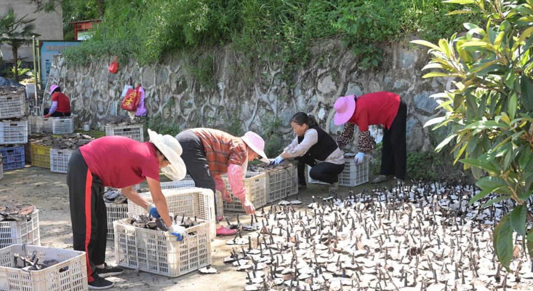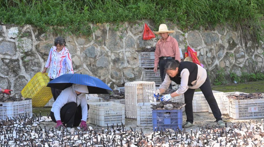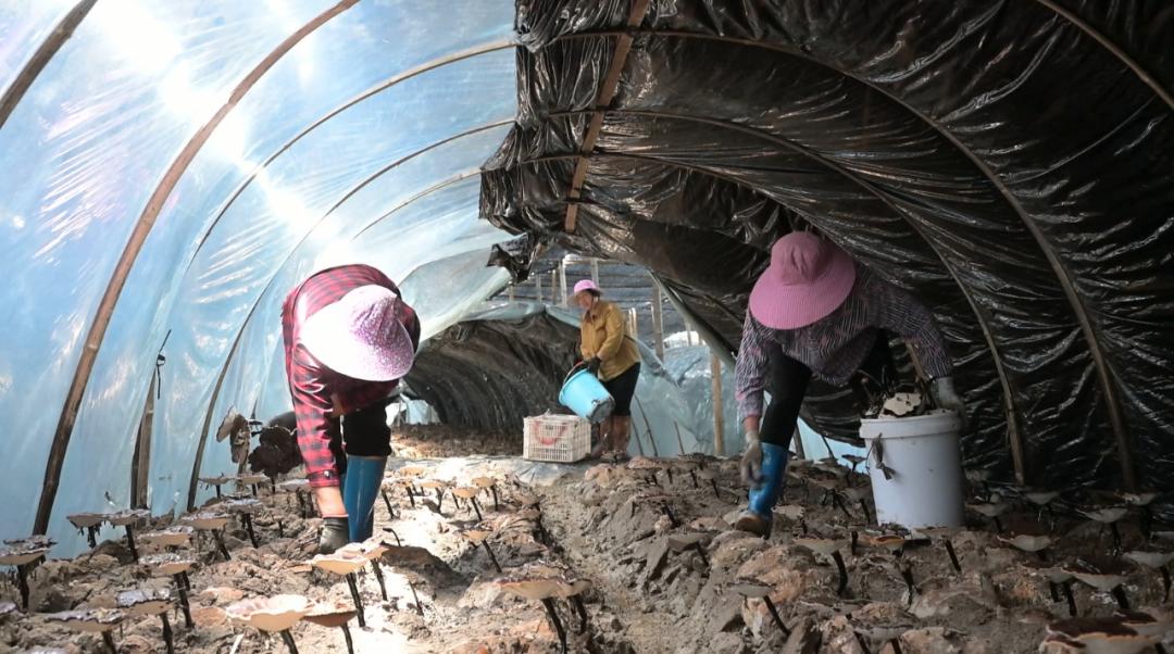 灵芝产业发展不仅为种植户带来了丰厚的收益,也为周边群众提供了就近务工的机会,当地村民可以参与到灵芝种植、管理、采收等各个环节,灵芝采收季,每天都有不少当地村民在基地务工。