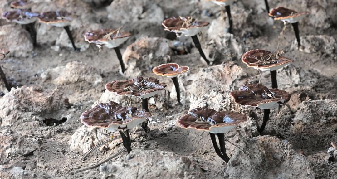 眼下正是灵芝成熟采收时节,走进富城乡寨头村灵芝种植基地,只见一朵朵深褐色的灵芝宛如撑开的小伞,个头饱满,长势喜人。工人们穿梭在基地里,熟练地采摘、装筐、搬运、装车,一派热火朝天的丰收景象。