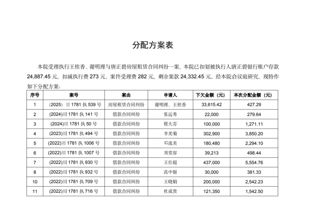 原标题:《万源市人民法院关于被执行人唐正碧执行案款的公告》