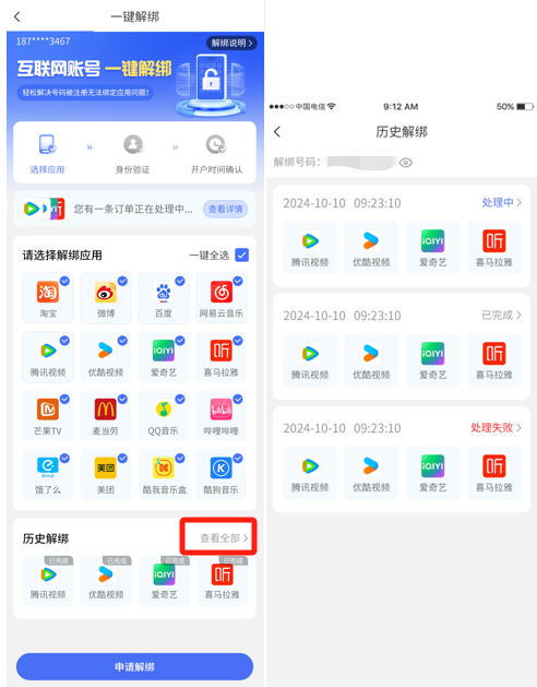 今年5月,工信部指导电信运营商和互联网企业联合提供“二次号码焕新”服务,可一键解绑历史互联网账号,目前已覆盖超200 款主流互联网应用。用户可以在所属运营商App上提交解绑申请,通过中国信通院的平台中转,协调主流互联网应用配合处理。这项新服务无疑释放出积极信号,是跨行业协同迈出的关键一步。