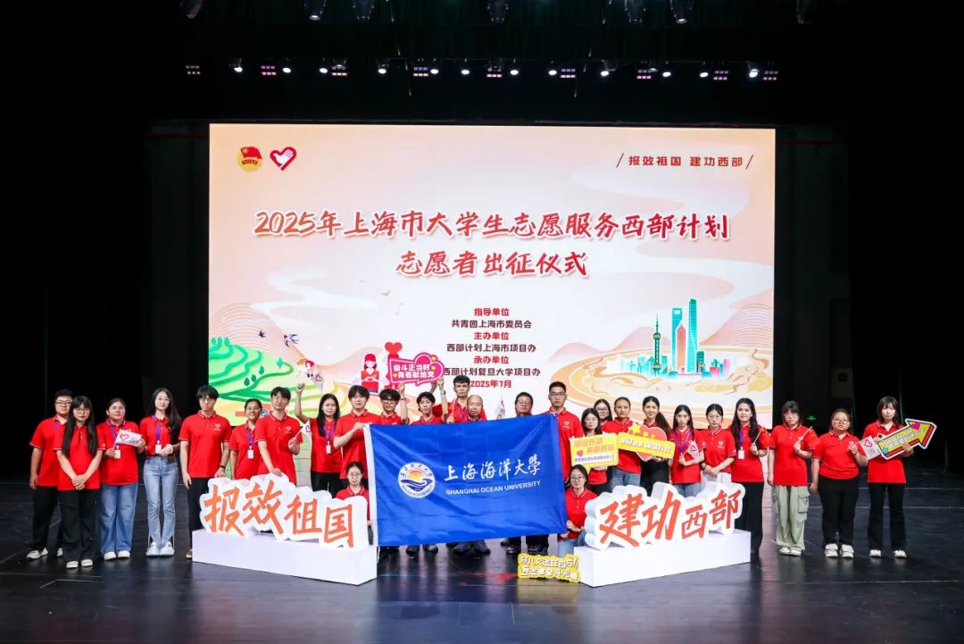 7月9日下午,“青春为中国式现代化挺膺担当”——2025年上海市大学生志愿服务西部计划志愿者出征仪式在复旦大学举行。今年,上海海洋大学共有30名同学通过层层选拔,成功入选2025年西部计划。他们即将启程,奔赴西藏、云南、新疆生产建设兵团等祖国最需要的地方,开展为期1至3年的志愿服务工作,将青春热血挥洒在西部广袤的土地上。