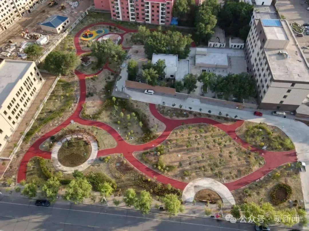 走进公园,红色沥青铺设的适儿化步道蜿蜒其间,孩子们在游乐广场上追逐嬉戏,滑梯、蝴蝶琴、秋千、跷跷板等设施前满是欢声笑语。公园还安装了扭腰器、身背架等健身器材,建设了凉亭,种植了油松、国槐、山桃、海棠等多种常绿乔木、落叶乔木、灌木绿篱。