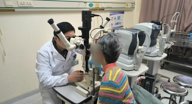 在护理员阿姨的陪同下,张阿姨来到奉贤区中心医院眼科刘刚主任门诊。经过详细检查,刘刚主任发现张阿姨双眼患有老年性白内障,双眼晶状体完全混浊;右眼视力仅眼前手动(只能看到手在眼前晃动的影子),左眼视力仅为0.1。经过术前视力及眼部检查初步评估,如果通过白内障手术,张阿姨仍有重新复明的可能性。但由于老人是渐冻症患者,手术面临着患者术中配合困难、麻醉风险高及白内障程度重等挑战,一旦有所闪失,后果严重。