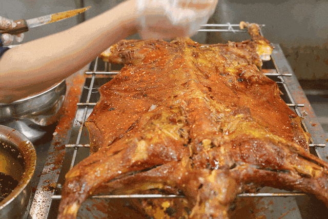 再淋入酱汁,随着冰块融化,羊肉慢慢熟透