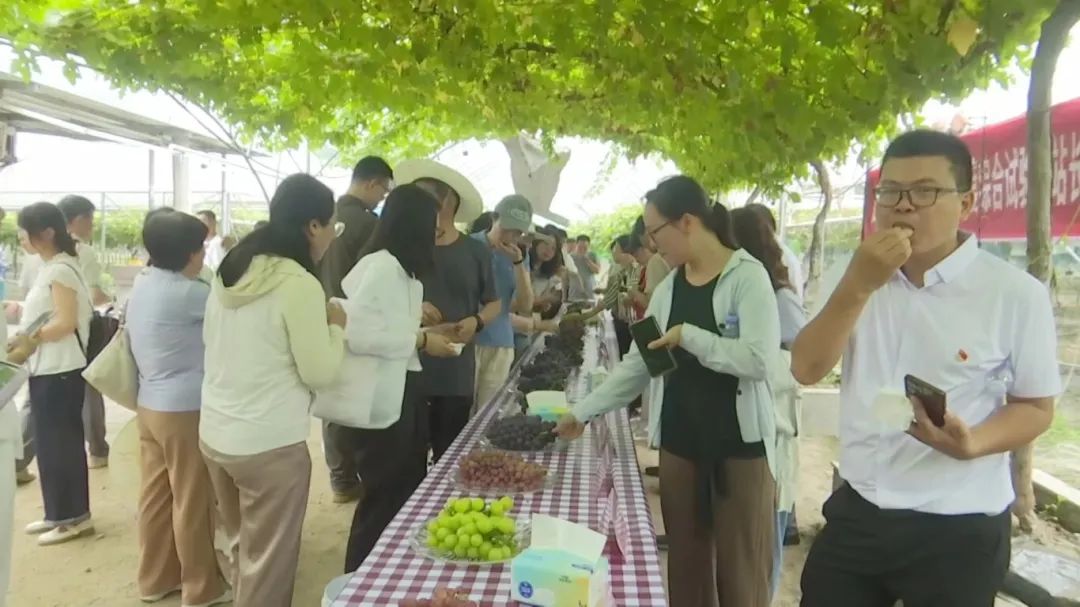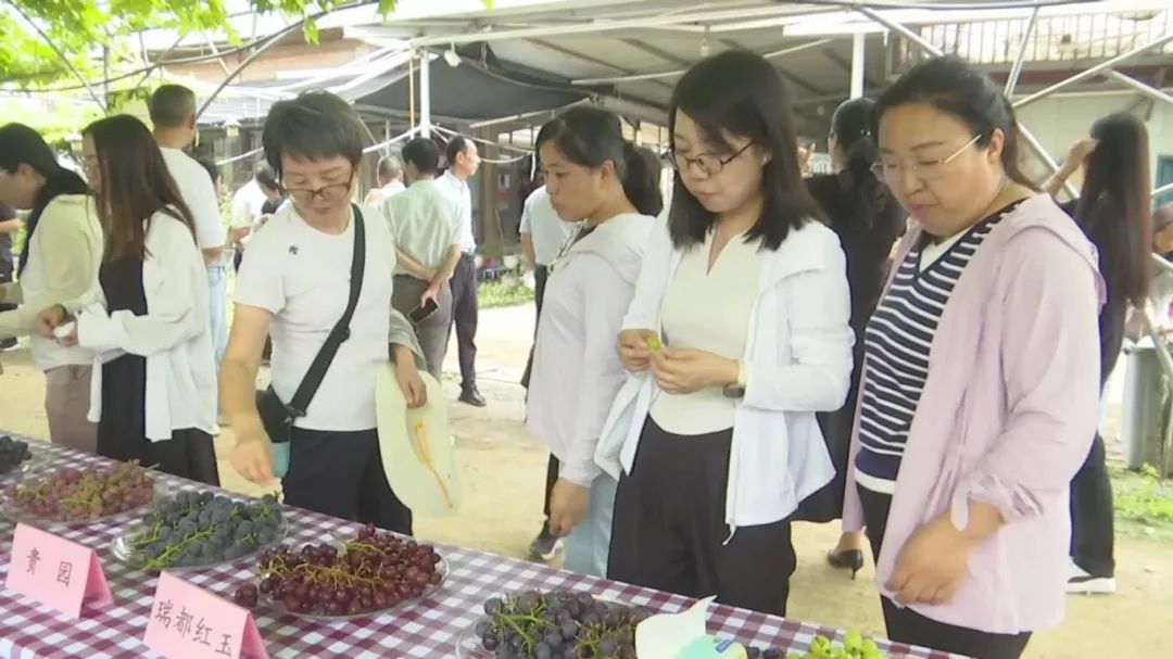 随后,在葡萄成果展示环节,专家们现场品鉴了多个葡萄品种,对福建省农科院葡萄科研团队推广的“宝光”“蜜光”葡萄品种和基地示范的“设施避雨栽培葡萄高质量生产技术”给予高度评价。