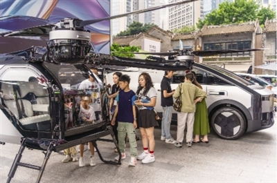 2024年10月,小鹏汽车旗下广东汇天航空航天科技有限公司飞行汽车智造基地在广州开发区、黄埔区正式动工,将生产分体式飞行汽车“陆地航母”的飞行体部分。资料图为广东省广州市天德广场未来飞行科技展览上展出的小鹏汇天“陆地航母”飞行汽车,吸引市民游客近距离参观。