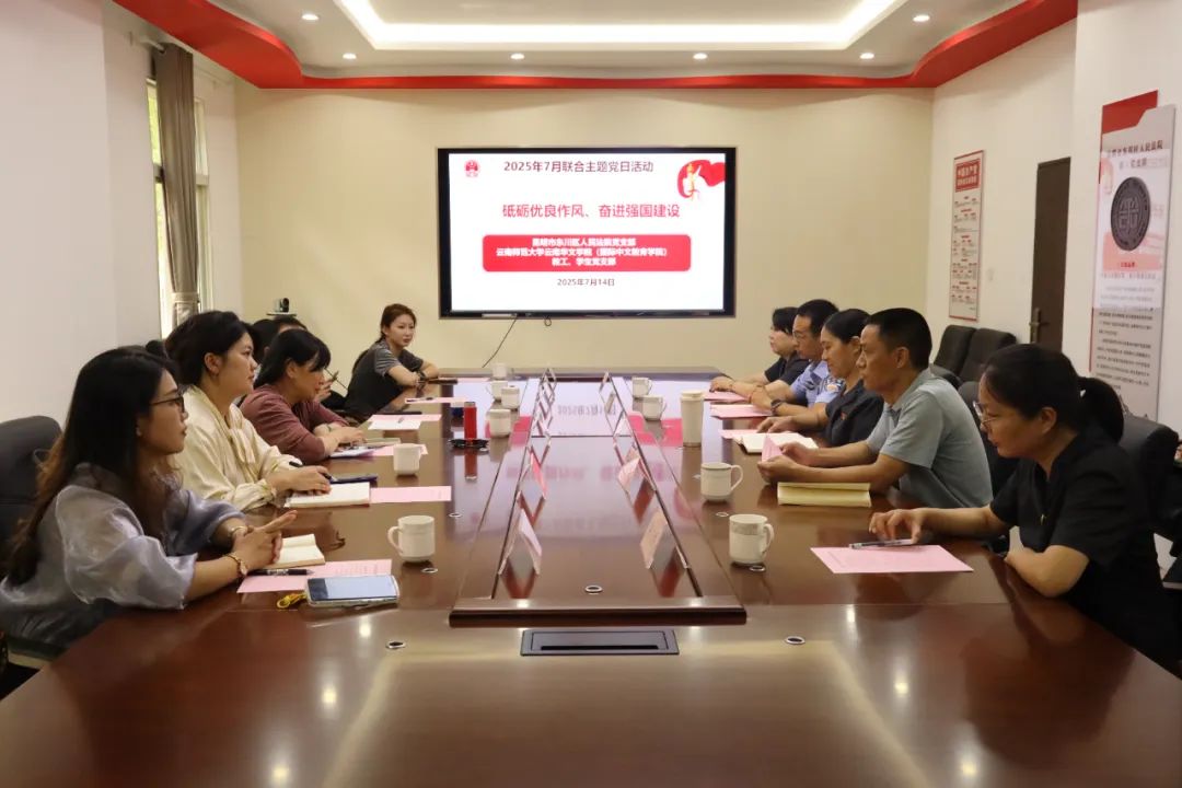 为深化党建引领作用,推动基层党组织互学互鉴,7月14日,东川区人民法院第一党支部与云南师范大学华文学院(国际中文教育学院)教工、学生党支部,联合开展“结对共建聚合力 互学共进促发展”主题交流活动,双方通过实地参观、文化互鉴、座谈研讨等形式,共话党建经验,共谋发展新篇。