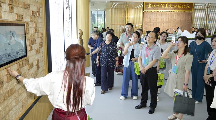 会后,参会代表们在宝鸡中医药文化体验馆内触摸着针灸铜人上的穴位按键,亲眼见证经络图在屏幕上徐徐展开。