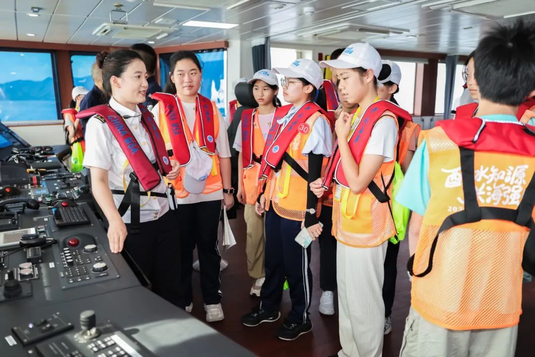 首站登临60米级“海巡0939”轮,少年们瞬间被执法利器的威严所震撼。海事人员生动讲解海事部门如何护航海上交通大动脉、保障能源运输安全、助力大湾区海洋经济蓬勃发展。当亲手触摸先进的导航与救援设备,海事人“向海图强”的使命,已悄然在少年心中扎根。