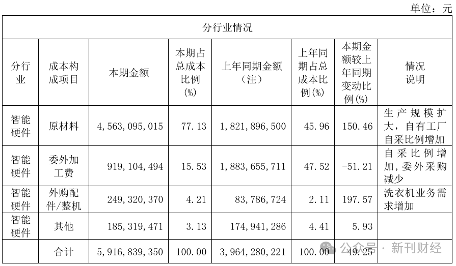 然而在2024年年报的分行业情况中,智能硬件的外购配件/整机的总成本比例上升到4.21%,金额同比大幅增长197.57%,公司直接说明其原因为“洗衣机业务需求增加”,这样的反差令市场有所疑惑,不过其他侧面也并非没有端倪。