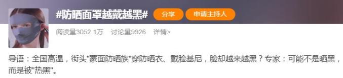 原标题:《防晒面罩越戴越黑!是热黑的还是捂黑的?》