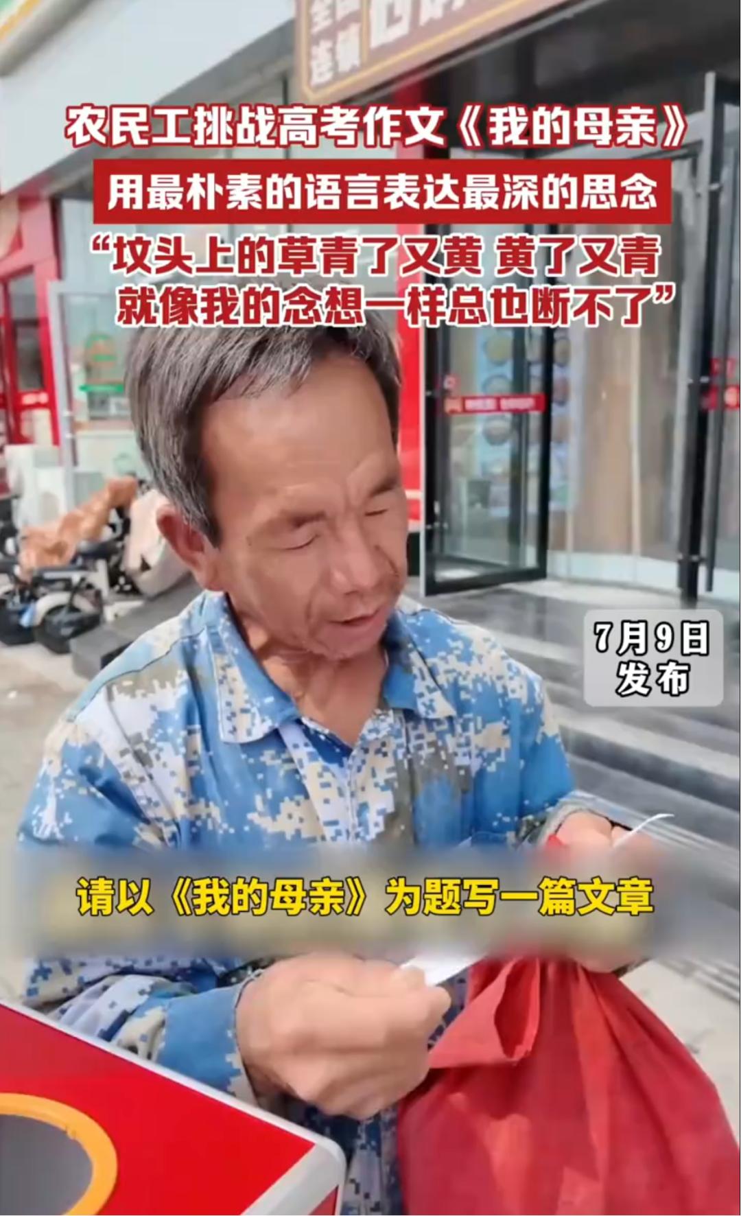 今天,我巧遇短视频采访,还需要抓题,因为我是这群工友中唯一上过高中的,两个女孩子就选中了我,我有幸抓到了“我的母亲”这个标题。