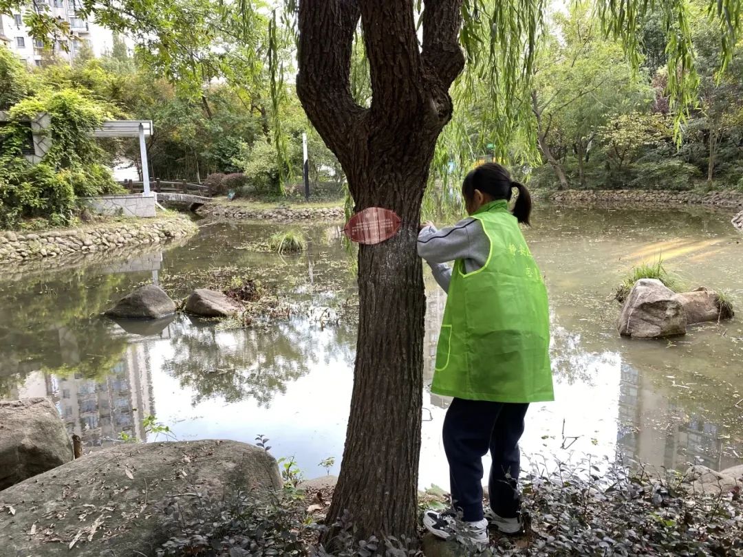 针对议事会上提出的安全警示牌和树牌老化问题,居委会创新开展“秋日的来信”植物科普实践活动。“启航”小队志愿者化身为“安全小卫士”和“科普小卫士”,用稚嫩的画笔为小区的树木设计制作了一批“新名片”,绘制“当心落水”“体育器材请勿攀爬”等温馨提示牌,不仅装点美化了社区环境,也传递了安全与文明的理念。