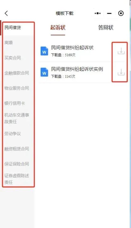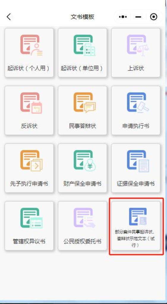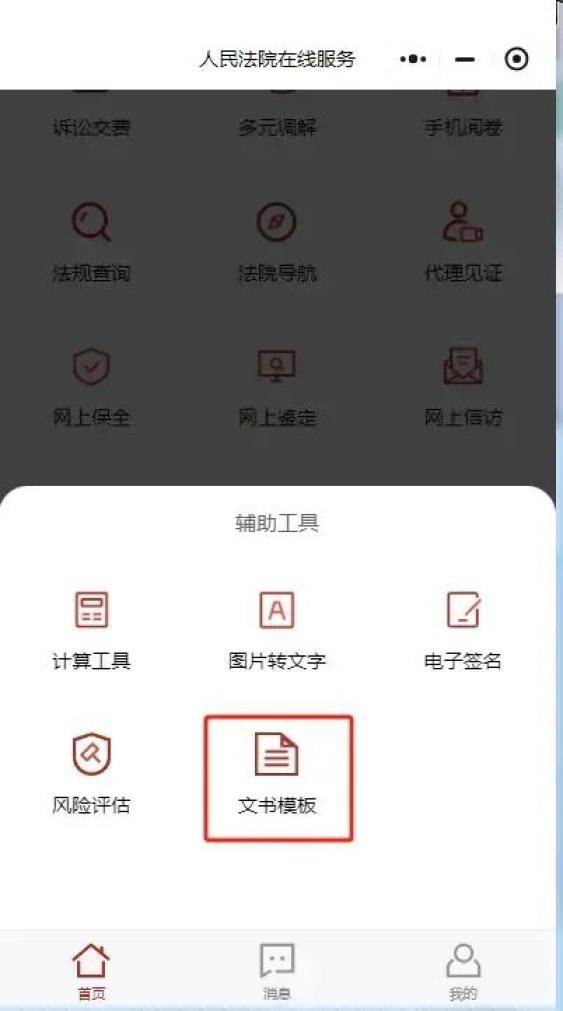 搜索“人民法院在线服务”→进入“辅助工具”→选择“文书模板”→下载所需类型的示范文本