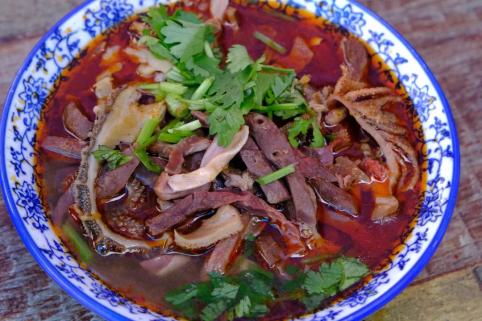 热汤里翻滚着鲜嫩的羊杂,搭配辣油和香菜,一口汤下去,毛孔都透着舒坦。