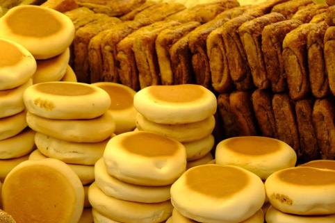 扎实的面香夹着红糖或咸酥,羊杂汤的黄金CP。