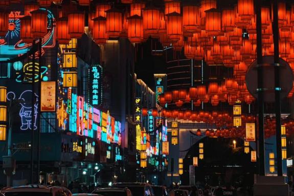 和街头巷尾亮起的霓虹灯火