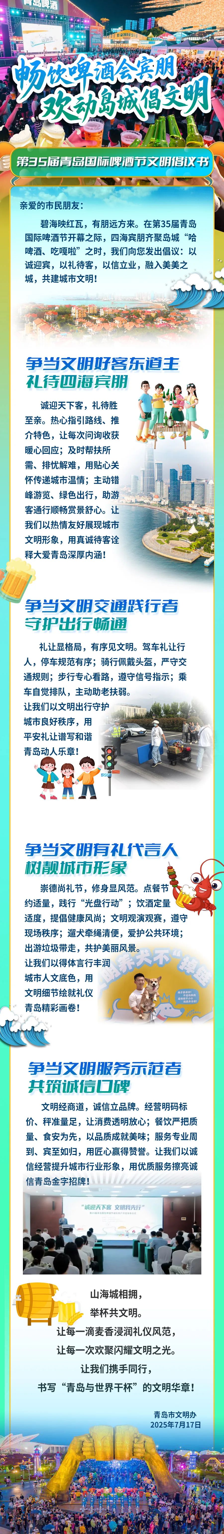 原标题:《畅饮啤酒会宾朋 欢动岛城倡文明——第35届青岛国际啤酒节文明倡议书》