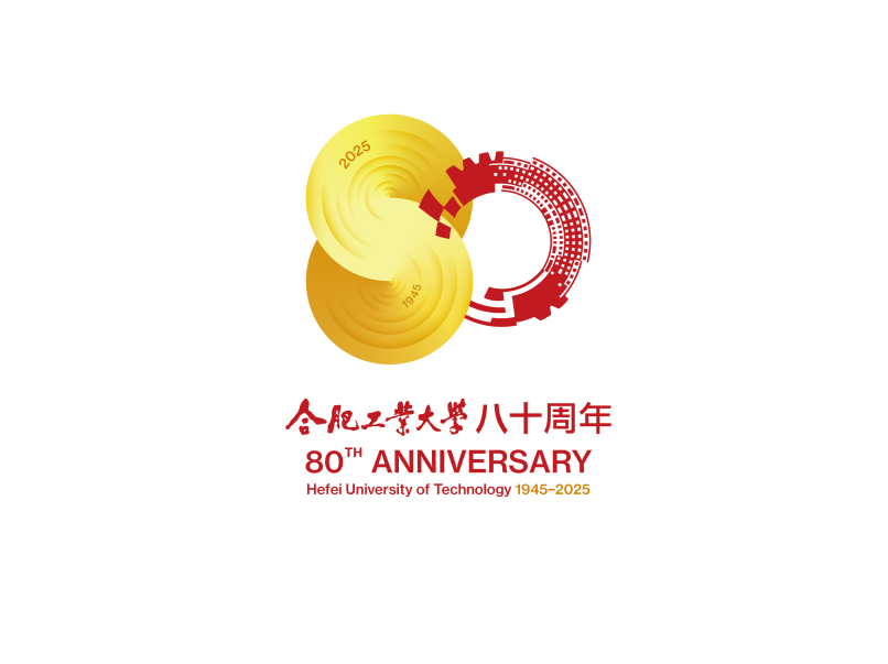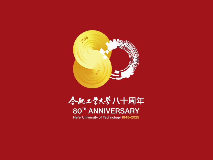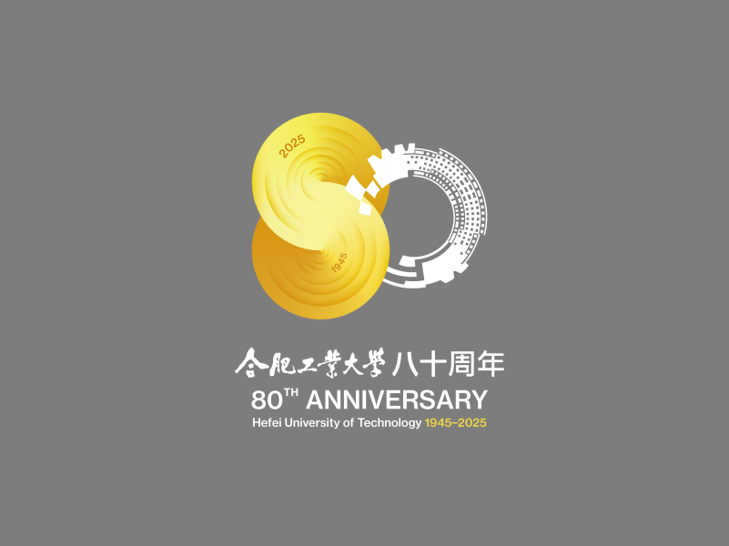 ▸主体构型:以数字“80”为主体构型,其中,“8”采用立体化设计处理,借鉴年轮的自然纹理,运用8根虚实凹凸的线条结构,传达出时间流转、生命律动与进取精神;“0”则结合学校标志性建筑主楼,融入齿轮造型元素体现工大特色,象征科技力量与创新驱动。“0”同时向外延展出四大主题内涵:庆典氛围、智能互联、工业本源与信息图形,构建多维意象,强化视觉语言的文化深度。