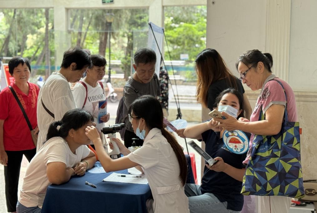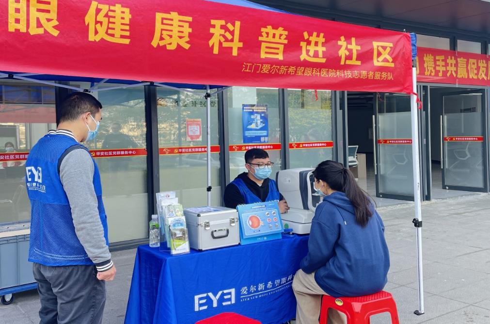 今年6月“全国爱眼日”前后,江门爱尔新希望眼科医院党支部组织医护工作者,走进各社区普及用眼护眼知识,还带来专业仪器,为街坊邻里们检测视力、义诊治疗。