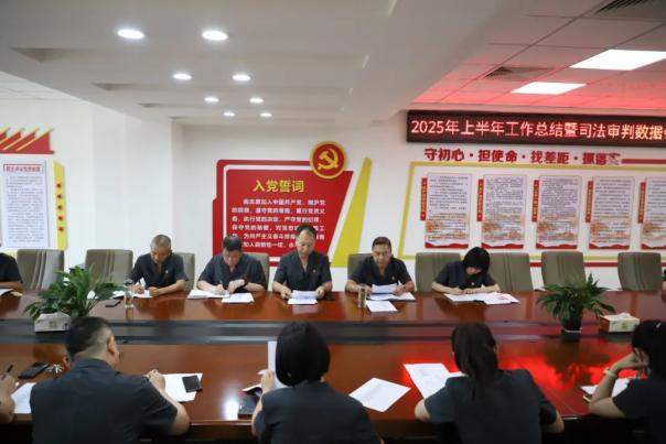 7月18日,龙城区人民法院召开2025年上半年工作总结暨司法审判数据会商会议。院领导班子、各部门负责人、员额法官参加会议。